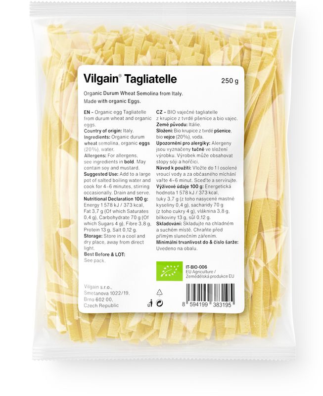 Vilgain Tagliatelle těstoviny BIO vaječné semolinové 250 g