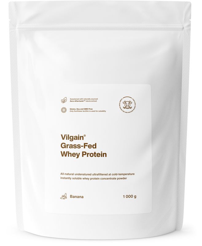 Produkt, o kterém je zde hovořeno, je Vilgain Grass-Fed Whey Protein. Jedná se o protein 100% přírodního původu bez umělých sladidel. Hlavní složkou je syrovátkový koncentrát z vysoce kvalitního mléka krav, které se pasou na holandských loukách. Tento protein obsahuje vysoký podíl skvěle využitelných bílkovin, včetně BCAA, které podporují růst a udržení svalové hmoty. Díky ultrafiltraci za nízkých teplot jsou v proteinu zachovány hodnotné proteinové frakce, které posilují imunitu a chrání tělo proti bakteriálním a virovým infekcím.