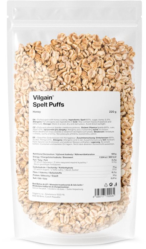 Snídaně vhodná pro děti i pro tvůj návrat do dětství – Vilgain Spelt Puffs, neboli sladká pufovaná špalda. Tyhle lehoučké a voňavé cereálie si zamiluješ nejen pro jejich chuť a křupavost, ale taky pro jejich složení – jen 3 ingredience dělají veškerou magii.